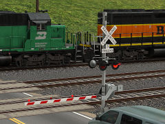 Grade crossing US style 3 tracks (1 track angular), boom gates, situated in Whitefish(MT)