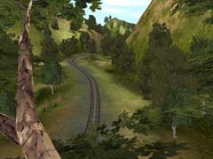 Fictional route featuring logging, mining, coal and lumber industries. Utilizes some payware items such as the Nature Series from Murchison 2, JVC trees, shrubs and grass. Several items are not on the DLS. A small session is available called MountainView Goods Delivery. All steam engines. Mining and logging industries are 36' Narrow Guage. Includes the 'Blue Comet' from Auran.