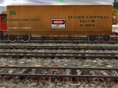 Container car coverted at Rigby Yard by the Maine Central to be used as mobile generator unit during night work. With the generous permission of Wayne Cook (AKA gandy-dancer), the original author, I have taken over this item in order to update it to TRS2010 standards and allow it to continue in Trainz. The original author still retains all copyrights for this great piece of content.