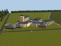 A hospital complex. 1027 Polys. Ported with appropriate Trainz modifications by me from the Columbus Regional Hospital model on the Google 3D Warehouse. DLS search keywords: hospital.