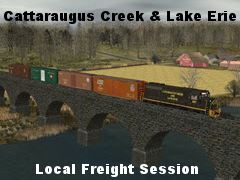 Local freight session #1 for the Cattaraugus Creek & Lake Erie Route. This session has you making a mixed freight run from Cattaraugus Yard to Wanakah Yard. Enroute you will pick up cars from the various customers and drop them off in Wanakah. In Wanakah you will pick up another mixed freight consist and deliver the cars to various customers east of the Cattaraugus Yard. The session ends when you unload six cars of coal at the Edison Power Plant. The session starts at 7AM on a spring day and takes about two hours to complete. Weather is typical for spring in the North East and can vary. To encourage the author to create additional sessions post comments and feedback on this session at the Cattaraugus Creek & Lake Erie official support thread on the Auran/N3V Forums at: http://forums.auran.com/trainz/showthread.php?104926-The-Cattaraugus-Creek-amp-Lake-Erie-Official-Support-Thread