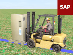A very detailed, weathered and animated forklift with driver and pallet of cardboard boxes. Important note: The 30 meter long blue placement path will only show up in Surveyor mode and helps you to place the tractor on your route correctly. Uses my MoveBot system for horizontal axis movement. Height adjustable. Has particle effects and sound effects. Uses high quality non-parallax PBR textures. Poly count = 77802.