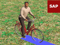 A very detailed man coasting along on a bicycle. Important note: The 100 meter long blue placement path will only show up in Surveyor mode and helps you to place the item on your route correctly. Uses my MoveBot system for horizontal axis movement. Height adjustable. Has sound effects. Uses high quality non-parallax PBR textures. Poly count = 61247.