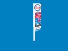 Sign for an Esso petrol station. The effective system load of this asset is 2428 polygons (28 from geometry, 2400 from textures).