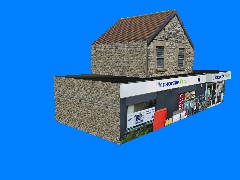 Suburban shop for an English village. The effective system load of this asset is 2184 polygons (84 from geometry, 2100 from textures).