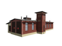 2 gleisiger Lokschuppen des Bahnhof Kuehlungsborn West Zustand 2012 mit animierten Lokschuppentoren, gebaut wurde dieser im Jahre 1922, die Lokschuppenfront wurde im Jahre 2005 rsetauriet bzw. umgebaut für den Einbau neuer Lokschuppentore.