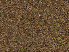 PBR environment ground texture. Dead & green grass on dark brown soil.