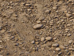 PBR environment ground texture. Large & small stones on sandy colored soil.