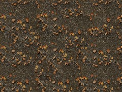 PBR environment texture. Fallen fall season tree leaves on a drk brown soil background.