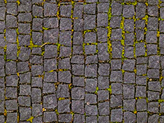 PBR environment ground texture. Cobblestone pavers with grass inbetween joints.