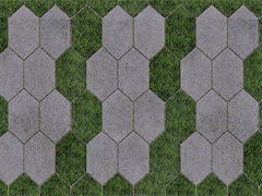 PBR environment ground texture. Mondo grass between offset hexagonal concrete pavers
