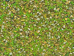 PBR environment ground texture Gray gravel mixed with green weeds and plant debris.