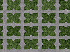 PBR environment ground texture. Mondo grass between concrete pavers shaped into a clover pattern.