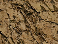 PBR environment ground textur. Indented-protruding brown rock, cracked and weathered rock face