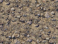 PBR environment ground texture. Light brown sand texture and excavated scattered brown stones.