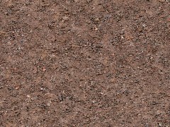 PBR environment texture. Loose packed red brown soil & pebbles.