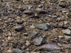 PBR environment ground texture. Gray-brown round & sharp stones.