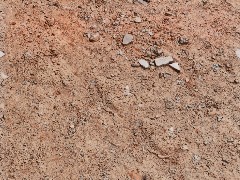 PBR environment ground texture. Red-Brown sandy & dusty soil and stones