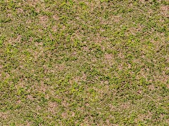 PBR environment ground texture. Close spaced patches of weeds on red-brown soil.