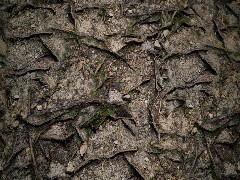 PBR environment texture. Forest ground with exposed tree roots and brown soil.