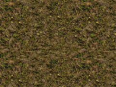 PBR environment texture. Forest ground with brown soil, grass patches, and fallen yellow leaves.