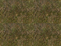 PBR environment texture. Forest ground with brown soil, grass patches, moss, and twigs.