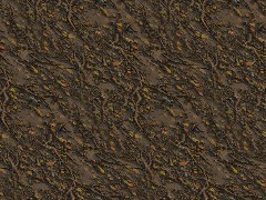 PBR environment texture. Dark moist soil with exposed roots and dead leaves