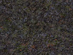 PBR environment ground texture. Dark brown (black) dry soil with moss