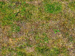 PBR environment ground texture. Patchy green weeds and brown sandy soil.
