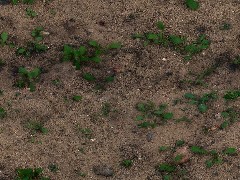 PBR environment ground texture. Brown sandy type soil green clover type weeds.