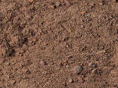 PBR environment ground texture. Lumpy red tint soil with pebbles.