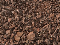 PBR environment ground texture. Various sized sharp red-brown stones.