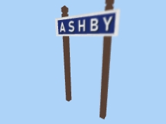 Midland Railway sign for the station Ashby. The effective system load of this asset is 740 polygons (140 from geometry, 600 from textures).