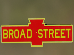 Pennsylvania Railroad Keystone Station sign for Broad Street Station in Philadelphia PA. Broad Street Station was also Corporate Headquarters for the PRR. NOTES: this PBR object is a scenery (building) item. It can be used by placing it next to a building. Based on PRR Drawing Number 78160-A, dated 1926 (version 1 - corrected emission bug).