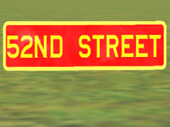 A Pennsylvania Railroad Station sign for the 52nd Street station in Philadelphia, which was located at 52nd Street and Lancaster Avenue on the Main Line. NOTE: this PBR object is a scenery (building) item. It can be used by placing it next to a building. Based on PRR Drawing Number 78160-A, dated 1926.