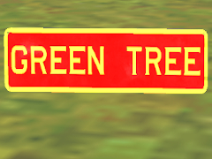 A Pennsylvania Railroad Station sign for the Green Tree station on the Main Line between Philadelphia and Harrisburg. This station was located between Paoli and Malvern, where the Old Lincoln Highway crossed the Main Line tracks. NOTE: this PBR object is a scenery (building) item. It can be used by placing it next to a building. Based on PRR Drawing Number 78160-A, dated 1926.
