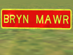 A Pennsylvania Railroad Station sign for the Bryn Mawr station on the Main Line between Philadelphia and Harrisburg. NOTE: this PBR object is KIND mesh. It is intended to be used in conjunction with one or more attachment points on another object. The geometric center of this sign's back is where the attachment will occur. Based on PRR Drawing Number 78160-A, dated 1926.