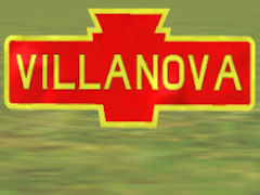 A Pennsylvania Railroad Station sign for the Villanova station on the Main Line between Philadelphia and Harrisburg. In earlier times on the PRR, Villa Nova was spelled as two words; I made a station sign for that era earlier. Recently I ran across a photo of the station in later days, and it clearly had a keystone-type station sign with the name as one word: Villanova; hence this sign for that later era. NOTE: this PBR object is a scenery (building) item. It can be used by placing it next to a building. Based on PRR Drawing Number 78160-A, dated 1926.