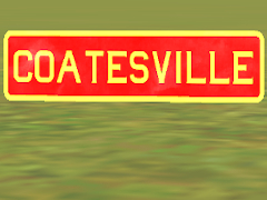 A Pennsylvania Railroad Station sign for the Coatesville station on the Main Line between Philadelphia and Harrisburg. NOTE: this PBR object is KIND mesh. It is intended to be used in conjunction with one or more attachment points on another object. The geometric center of this sign's back is where the attachment will occur. Based on PRR Drawing Number 78160-A, dated 1926.