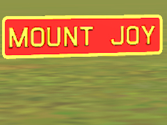A Pennsylvania Railroad Station sign for the Mount Joy station on the Main Line between Philadelphia and Harrisburg. NOTE: this PBR object is KIND mesh. It is intended to be used in conjunction with one or more attachment points on another object. The geometric center of this sign's back is where the attachment will occur. Based on PRR Drawing Number 78160-A, dated 1926.