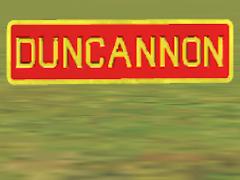 (v1 - added no. miles) A Pennsylvania Railroad Station sign for the Duncannon station on the Main Line between Harrisburg and Altoona. This station was located 14.8 railroad miles west of the Harrisburg PA station. NOTE: this PBR object is a scenery (building) item. It can be used by placing it next to a building. Based on PRR Drawing Number 78160-A, dated 1926.