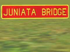 A Pennsylvania Railroad Station sign for the Juniata Bridge station on the Main Line between Harrisburg and Altoona. NOTE: this PBR object is KIND mesh. It is intended to be used in conjunction with one or more attachment points on another object. The geometric center of this sign's back is where the attachment will occur. Based on PRR Drawing Number 78160-A, dated 1926.
