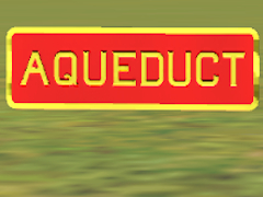 (v1 - added no. miles) A Pennsylvania Railroad Station sign for the Aqueduct station on the Main Line between Harrisburg and Altoona. This station was located 18.0 railroad miles west of the Harrisburg PA station. NOTE: this PBR object is a scenery (building) item. It can be used by placing it next to a building. Based on PRR Drawing Number 78160-A, dated 1926.