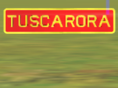 (v1 - added no. miles) A Pennsylvania Railroad Station sign for the Tuscarora station on the Main Line between Harrisburg and Altoona. This station was located 43.0 railroad miles west of the Harrisburg PA station. NOTE: this PBR object is a scenery (building) item. It can be used by placing it next to a building. Based on PRR Drawing Number 78160-A, dated 1926.