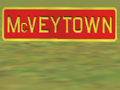 A Pennsylvania Railroad Station sign for the McVeytown station on the Main Line between Harrisburg and Altoona. This station was located 72.5 railroad miles west of the Harrisburg PA station. A photo dated 1964 shows a 'keystone type' sign on this station. Earlier photos show a sign like this model (yes, with the lower case c) on the station. I also made a 'keystone type' sign for this station. NOTE: this PBR object is a scenery (building) item. It can be used by placing it next to a building. Based on PRR Drawing Number 78160-A, dated 1926.