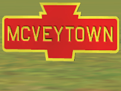 A Pennsylvania Railroad 'keystone style' station sign for the McVeytown station on the Main Line between Harrisburg and Altoona. This station was located 72.5 railroad miles west of the Harrisburg PA station. A photo dated 1964 shows a 'keystone type' sign on this station with an upper case C as in this model. Earlier photos show a sign with a lower case c on the station. I also made a 'plain type' sign for this station with a lower case c. NOTE: this PBR object is a scenery (building) item. It can be used by placing it next to a building. Based on PRR Drawing Number 78160-A, dated 1926.
