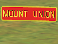 A Pennsylvania Railroad Station sign for the Mount Union station on the Main Line between Harrisburg and Altoona. This station was located 85.1 railroad miles west of the Harrisburg PA station. There is a photo dated 1946 that shows a 'keystone type' station sign here. Earlier photos show a 'plain style' sign like this one. I also made a 'keystone type' sign for here, take your pick. NOTE: this PBR object is KIND mesh. It is intended to be used in conjunction with one or more attachment points on another object. The geometric center of this sign's back is where the attachment will occur. Based on PRR Drawing Number 78160-A, dated 1926.