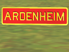 A Pennsylvania Railroad Station sign for the Ardenheim station on the Main Line between Harrisburg and Altoona. This station was located 94.8 railroad miles west of the Harrisburg PA station. NOTE: this PBR object is a scenery (building) item. It can be used by placing it next to a building. Based on PRR Drawing Number 78160-A, dated 1926.