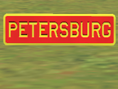A Pennsylvania Railroad Station sign for the Petersburg station on the Main Line between Harrisburg and Altoona. This station was located 103.3 railroad miles west of the Harrisburg PA station. NOTE: this PBR object is KIND mesh. It is intended to be used in conjunction with one or more attachment points on another object. The geometric center of this sign's back is where the attachment will occur. Based on PRR Drawing Number 78160-A, dated 1926.