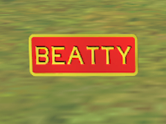 A Pennsylvania Railroad Station sign for the Beatty station on the Main Line between Altoona and Pittsburgh. This station was located 76.0 railroad miles west of the Altoona PA station. NOTE: this PBR object is a scenery (building) item. It can be used by placing it next to a building. Based on PRR Drawing Number 58755, dated 1906.